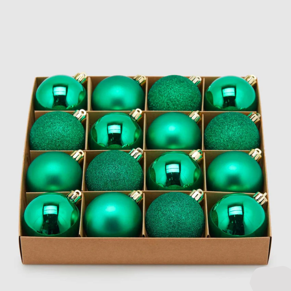 O conjunto de 16 bolas de Natal é perfeito para criar lindas decorações de Natal, tanto na árvore quanto em outros cômodos da casa.